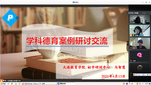 2021年4月13日下午,初中化學“學科德育案例”培訓研討活動,在騰訊會議平臺上舉行。大連教育學院初中研訓中心研訓教師、各區(qū)市縣初中化學教研員、學科中心組成員,共計33人參加了活動,會議由市研訓教師馬智慧主持。