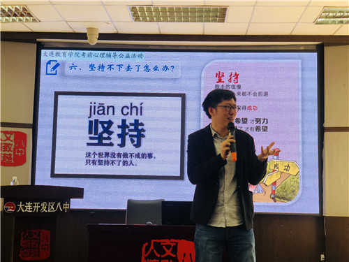 為緩解高考學(xué)生和家長的壓力,大連教育學(xué)院考前心理輔導(dǎo)公益活動(dòng)于4月14日和17日,走進(jìn)開發(fā)區(qū)第八高級(jí)中學(xué),為近1000名高三學(xué)生和家長做考前心理輔導(dǎo)講座。