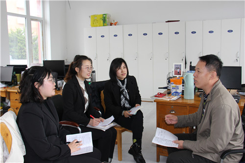高新區(qū)凌水小學(xué)校長(zhǎng)吳曉紅詳盡地為與會(huì)人員介紹了學(xué)校在創(chuàng)設(shè)課程的建設(shè)與實(shí)施中諸多先進(jìn)經(jīng)驗(yàn)。就語(yǔ)文學(xué)科來(lái)說(shuō),其主要方法有三:其一,努力營(yíng)造校園文化。凌水小學(xué)以籃球課間操,民樂(lè)團(tuán)、合唱隊(duì)、冰上速滑隊(duì)、剪紙藝術(shù)團(tuán)等特色辦學(xué)為契機(jī),促進(jìn)學(xué)生在活動(dòng)、實(shí)踐、體驗(yàn)、探究中提高學(xué)習(xí)效能、發(fā)掘潛能特長(zhǎng)。“以行立人,以學(xué)立智”良好的校園文化孕育了豐厚的人文精神,助力完善語(yǔ)文教學(xué)的實(shí)施理念,借助豐富的實(shí)踐活動(dòng)整合構(gòu)建課程實(shí)施內(nèi)容,探索積累課程實(shí)施策略,完善課程體系,助力學(xué)生語(yǔ)文學(xué)科的有效學(xué)習(xí),在語(yǔ)文與生活的雙向互動(dòng)和整合融通中提高學(xué)生的語(yǔ)文素養(yǎng)。其二,注重口語(yǔ)表達(dá)。學(xué)校語(yǔ)文團(tuán)隊(duì)通過(guò)開(kāi)展“口語(yǔ)表達(dá)策略研究”,抓住小學(xué)階段培養(yǎng)學(xué)生口語(yǔ)表達(dá)能力的關(guān)鍵期,努力提高學(xué)生口語(yǔ)表達(dá)能力,激發(fā)學(xué)生學(xué)習(xí)語(yǔ)言的興趣。其三,注重讀、寫(xiě)素養(yǎng)。學(xué)校每周拿出一節(jié)閱讀課、一節(jié)寫(xiě)字課,全面均衡地提高學(xué)生語(yǔ)文的各項(xiàng)關(guān)鍵能力。調(diào)研中,三位語(yǔ)文教研員深入課堂,分別聽(tīng)評(píng)了二年級(jí)劉爽老師執(zhí)教的《雷雨》、四年級(jí)劉媛媛老師執(zhí)教的《白鵝》、六年級(jí)孫藝丹老師執(zhí)教的《表里的生物》,充分感受凌水小學(xué)語(yǔ)文課堂中師生風(fēng)貌及學(xué)校年輕教師對(duì)教材和課堂的駕馭能力,獲取了調(diào)研的第一手資料。
