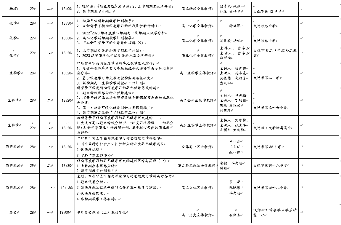 大連教育學(xué)院高中研訓(xùn)中心8月教研活動(dòng)計(jì)劃表