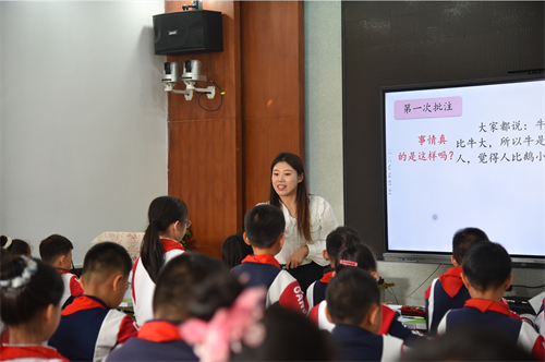 大房身小學(xué)奚爽老師通過四年級《牛和鵝》一課,引導(dǎo)學(xué)生學(xué)習(xí)批注的角度和方法,牽引學(xué)生嘗試運用批注的方法閱讀,讓學(xué)生經(jīng)歷由學(xué)習(xí)語文要素到遷移運用的過程。南關(guān)嶺小學(xué)張麗娜老師通過二年級《霧在哪里》一課,帶領(lǐng)學(xué)生感知作者豐富的想象力,激發(fā)學(xué)生大膽想象的興趣,借助文中的語言句式幫助學(xué)生表達自己的想象,使學(xué)生經(jīng)歷了從"文本-畫面-語言表達"的學(xué)習(xí)過程。