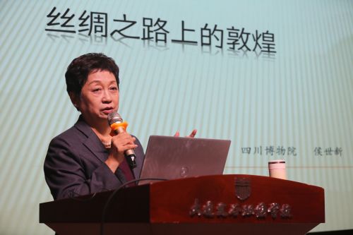 為了將更豐富更權(quán)威的博物館美育資源落地一線課堂教學(xué),拓展師生視野。侯世新研究館員做《絲綢之路上的敦煌》主題講座。侯教授針對她的研究方向從學(xué)者的角度介紹敦煌文化的藝術(shù)特色和歷史淵源,激發(fā)教師們對敦煌藝術(shù)的興趣。