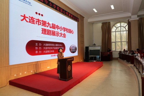 11月19日下午,由大連教育學(xué)院心理研訓(xùn)中心精心組織的大連市第九屆中小學(xué)校園心理劇展示大會在甘井子區(qū)育文中學(xué)順利舉行。遼寧省教育學(xué)會心理健康教育專委會理事長、遼寧教育學(xué)院心理教研員劉淑紅、大連教育學(xué)院副院長趙妤婕出席本次大會。全市12個區(qū)市縣的心理教研員、獲獎教師和高初小專兼職心理教師近400余人參加了本次大會。