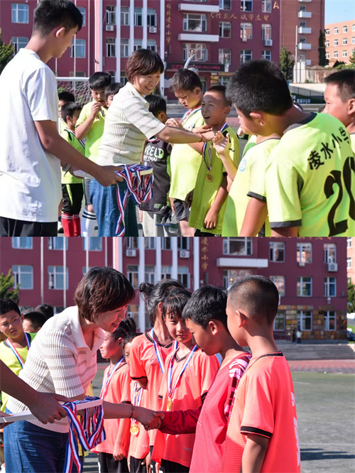 比賽結束后,吳曉紅校長為雙方參賽隊員頒發(fā)獎牌,鼓勵足球小將們奮勇爭先,期待下次比賽中再次相遇!