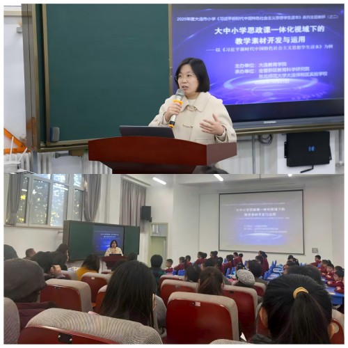 活動(dòng)中,東北師范大學(xué)大連保稅區(qū)實(shí)驗(yàn)學(xué)校江宏君老師呈現(xiàn)低年級(jí)讀本《新時(shí)代新生活》課例,以天鵝湖社區(qū)變遷、老物件故事等生活化素材,引導(dǎo)學(xué)生從“小變化”感知“大成就”;瓦房店市駝山鄉(xiāng)中心小學(xué)程憲東老師展示高年級(jí)讀本《綠水青山就是金山銀山》課例,體現(xiàn)學(xué)段差異化設(shè)計(jì)思路。課后,江宏君、王曉迎圍繞教學(xué)設(shè)計(jì)思路展開(kāi)訪談,分享“以生為本”的素材開(kāi)發(fā)策略;東北師范大學(xué)大連保稅區(qū)實(shí)驗(yàn)學(xué)校主任孫夢(mèng)匯報(bào)了學(xué)校道德與法治學(xué)科建設(shè)成果;李雪做微講座,引領(lǐng)《讀本》典型素材開(kāi)發(fā)與運(yùn)用的關(guān)鍵路徑。