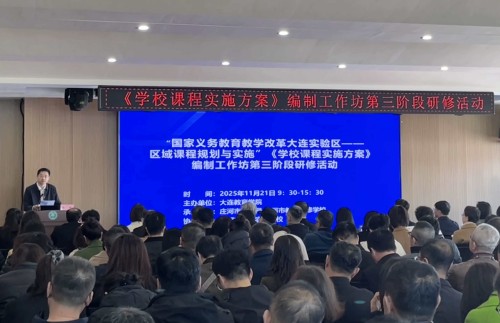 11月21日,由大連教育學(xué)院主辦,莊河市教育局、莊河市教師進(jìn)修學(xué)校承辦,莊河市海華實(shí)驗(yàn)小學(xué)協(xié)辦的“國(guó)家義務(wù)教育教學(xué)改革大連實(shí)驗(yàn)區(qū)——區(qū)域課程規(guī)劃與實(shí)施”《學(xué)校課程實(shí)施方案》編制工作坊第三階段研修活動(dòng)在莊河市海華實(shí)驗(yàn)小學(xué)順利舉行。本次研修活動(dòng)采取線上線下相結(jié)合的形式,聚焦學(xué)校課程實(shí)施方案的優(yōu)化與落地,吸引了大連市各區(qū)市縣(先導(dǎo)區(qū))教師進(jìn)修學(xué)校、中小學(xué)校、基地校的校長(zhǎng)以及我市基礎(chǔ)教育領(lǐng)軍人才共同參與。