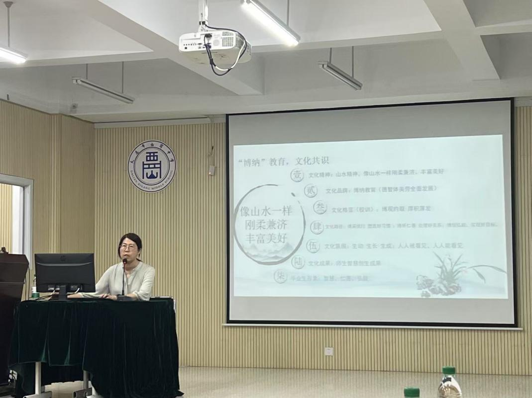高梅雙校長進(jìn)行了“一起讀書吧”書香校園建設(shè)經(jīng)驗(yàn)交流。在學(xué)校簡介部分,高校長從三個(gè)方面闡述了學(xué)校的發(fā)展理念與實(shí)踐路徑。一是“向上觸摸,做好堅(jiān)守頂層核心思想的事”,強(qiáng)調(diào)學(xué)校要有高遠(yuǎn)的追求和堅(jiān)定的信念,以核心思想引領(lǐng)學(xué)校發(fā)展方向;二是“立根生長,做好學(xué)校文化建設(shè)的事”,注重學(xué)校文化的根植與傳承,讓文化成為學(xué)校發(fā)展的靈魂;三是“務(wù)實(shí)深耕,做好優(yōu)質(zhì)發(fā)展的重要事項(xiàng)”,腳踏實(shí)地,聚焦關(guān)鍵領(lǐng)域,推動(dòng)學(xué)校高質(zhì)量發(fā)展。