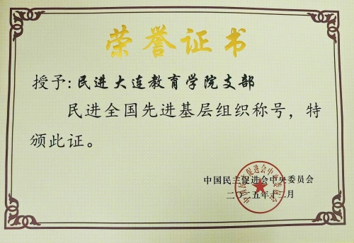 近日,民進大連教育學院支部被中國民主促進會中央委員會授予“民進全國先進基層組織”稱號。