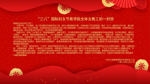 此外,學院還在3月8日為女教工們送上了一封節(jié)日慰問信。信中,對女教職工們的辛勤付出表示了衷心的感謝,并送上了誠摯的節(jié)日祝福。這封信不僅傳遞了學院對女教工的關(guān)懷與溫暖,也進一步增強了大家的歸屬感。