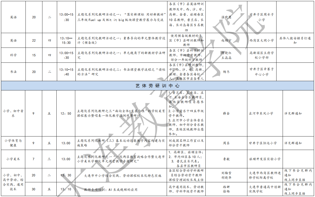 4.藝體勞研訓(xùn)中心5月教研活動(dòng)計(jì)劃