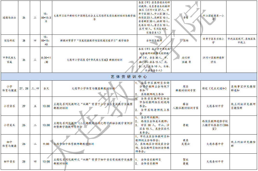 4.藝體勞研訓(xùn)中心8月教研活動(dòng)計(jì)劃