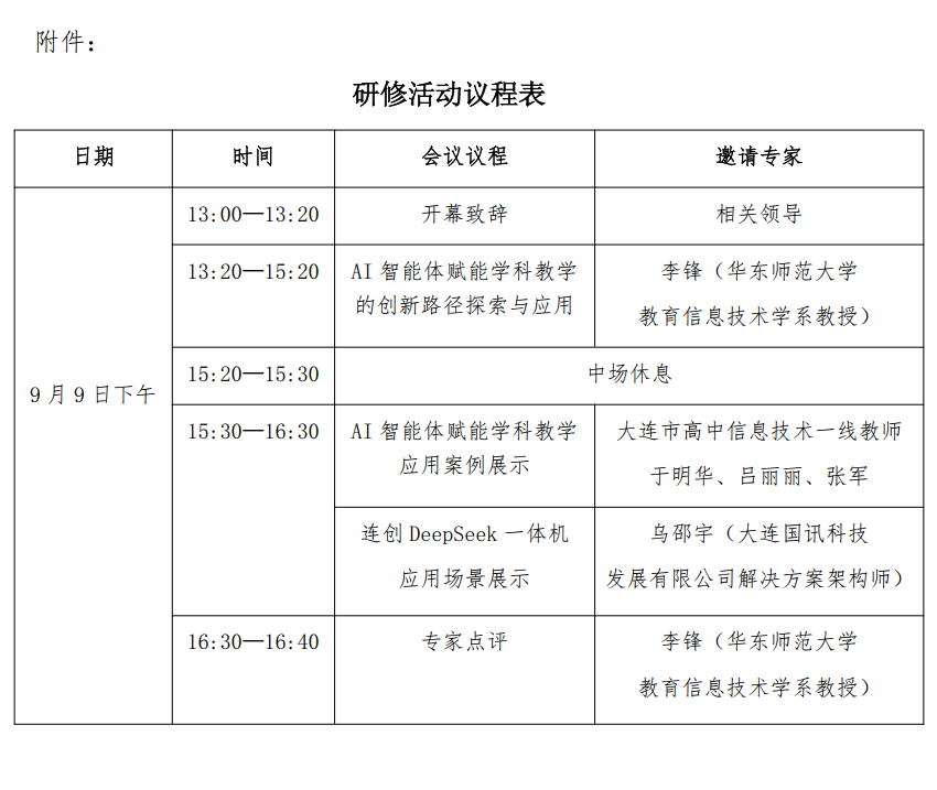 為落實國家、遼寧省關于中小學人工智能教育的實施方案要求,按照大連市教育局在2025年全市教育工作會議上提出的“促進人工智能與教育深度融合”的相關部署,提高教師對人工智能的理解與應用能力,現(xiàn)舉辦“大連市普通高中全學科教師人工智能素養(yǎng)提升研修活動”。有關事項通知如下: