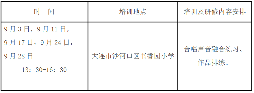 為貫徹落實《教育部關(guān)于全面實施學(xué)校美育浸潤行動的通知》和《遼寧省全面實施學(xué)校美育浸潤行動工作方案》精神,進(jìn)一步落實立德樹人的根本任務(wù),提高音樂教師專業(yè)素養(yǎng)和教育教學(xué)能力,提升音樂教育研究和課堂教學(xué)質(zhì)量,提高學(xué)生的審美及人文素養(yǎng),大連教育學(xué)院藝體勞研訓(xùn)中心擬于2025年9月繼續(xù)舉辦義務(wù)教育音樂教師合唱教學(xué)能力提升專項培訓(xùn)。